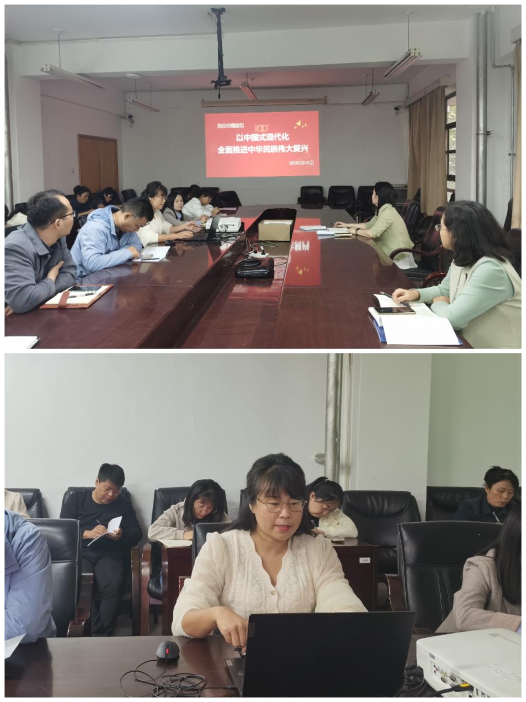 为深入学习贯彻习近平新时代中国特色社会主义思想和党的二十大精神,引导党员干部主动担当民族复兴重任,强化学习教育成效。近日,教务处党支部邀请校宣讲团专家张秀丽在力行楼222会议室作《以中国式现代化全面推进中华民族伟大复兴》专题报告。教务处全体党员参会。会议由教务处党支部副书记吴鋆萍主持。