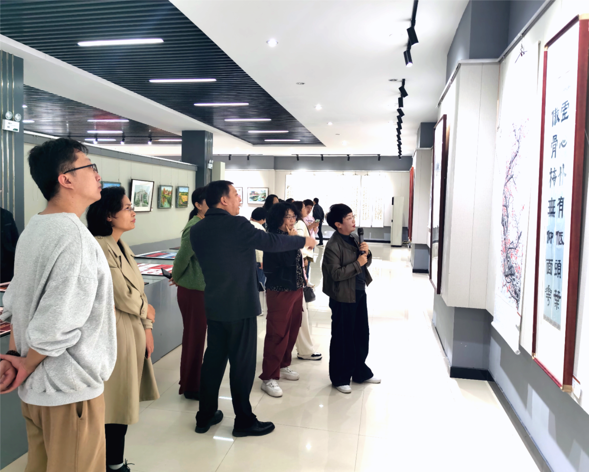 活动由教务处党支部副书记孙娟主持,她指出在这个特殊的节日里,此次党日活动旨在深入学习贯彻党的二十届三中全会精神,弘扬中华优秀传统文化,激发广大党员爱党、爱国、爱校情怀。展览聚焦盛世中华的恢弘壮举和百年理工的辉煌发展,书法作品笔走龙蛇,美术作品色彩充盈,艺术视角定格在“祖国昌盛”“春韵理工”“青山湖影”“秋日绿水”“明德任责”“好学力行”等精彩主题上。观展过程中,大家或驻足欣赏,或凝神细思,一幅幅精美的书画作品从不同角度展示了师生对祖国母亲的眷恋和对学校光明前景的希望,凝聚起爱国爱校的磅礴力量。