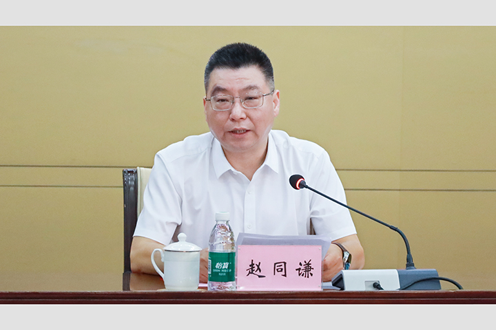 赵同谦在讲话时强调,学校各部门要以审核评估为契机,全面落实立德树人根本任务,为学校“双一流”创建和“国内一流特色高水平大学”建设奠定坚实基础。就进一步做好冲刺阶段的迎评工作,他提出三点要求。一是统一思想、凝聚共识。新一轮本科教育教学审核评估是对学校办学方向、办学水平、综合实力和人才培养质量的一次全面“体检”,对夯实本科教育教学工作核心地位,提升人才自主培养能力,实现学校内涵发展、特色发展、创新发展具有重要的推动作用。全校上下要牢固树立一盘棋的思想,切实增强做好审核评估工作的思想自觉和行动自觉。二是强化落实、夯实责任。各单位要严格执行学校审核评估工作文件,党政主要负责人作为审核评估迎评专项组的组长,要再动员、再部署,在进一步强化审核评估知识学习的基础上,高标准、严要求地把握各项迎评任务并扎实推进落实。三是营造氛围、展示成效。各单位要结合新一轮审核评估要求,深刻理解学校的学术型人才培养目标和举措,关注立德树人任务、“三全育人”格局、学生学习成效、教师教育教学水平、质量保障能力和质量文化建设等核心内容,凝练支撑本科教育教学的亮点和特色做法,高水平展示教育教学成效,积极营造浓厚的评估氛围。