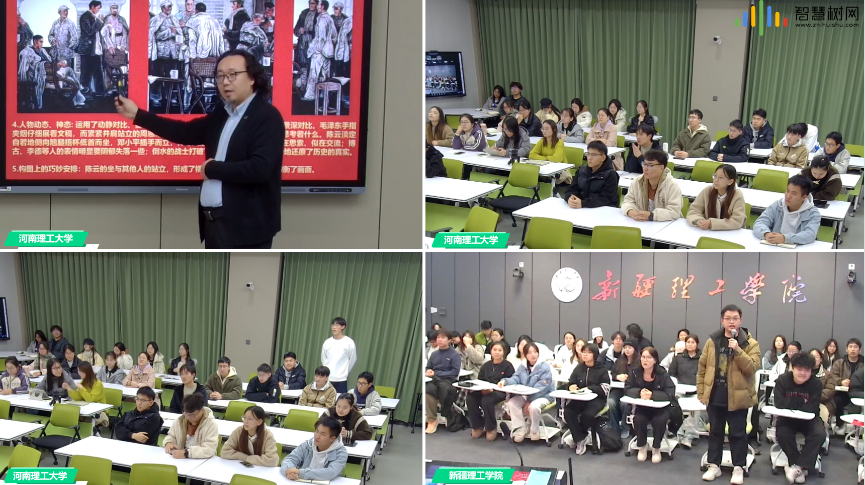 启动仪式结束后,建艺学院副院长韩宏斌利用智慧树同步课堂平台,为两校学生开启《美术鉴赏》课程线上线下混合授课。他以党史为脉络,让学生在欣赏作品的同时能够感受到画作背后的革命价值意义,从画面内容,细节处理等方面全方位深入浅出地评析画作,并以有奖竞猜的方式激发学生热情,积极开展教学互动,实现了一次别开生面的授课。两校学生认真聆听,积极参与问答,反响热烈。