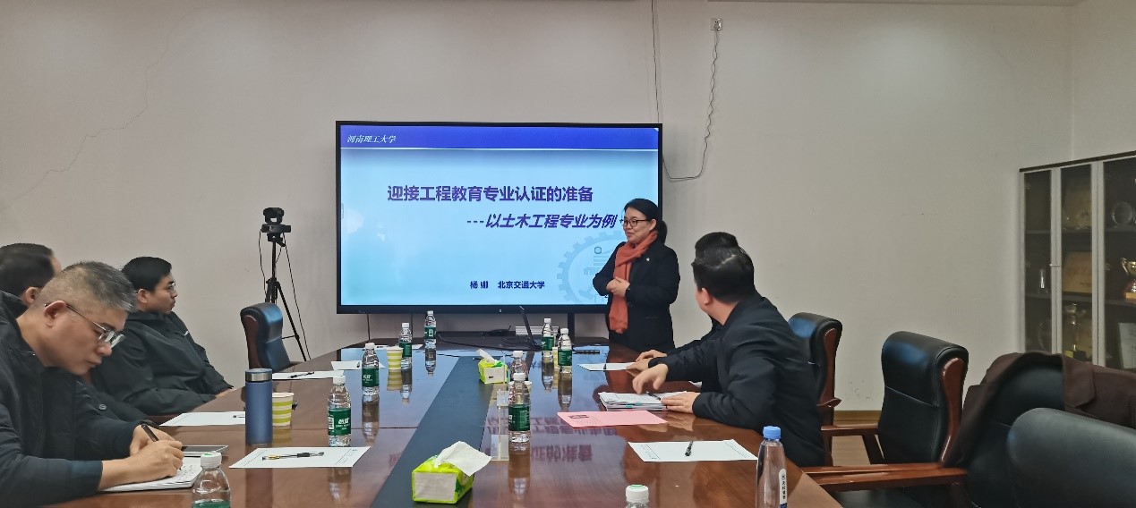 为更好落实工程教育认证理念,推动学院专业认证工作,11月25日下午,土木学院邀请北京交通大学杨娜教授在学院二楼会议室作了《迎接工程教育专业认证的准备-以土木工程专业为例》的报告,报告会由该院院长钱辉教授主持,学院系室主任、支部书记和教师代表参加。