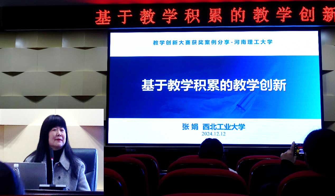 报告伊始,张娟教授详细介绍了历届全国高校教师教学创新大赛的基本概况,深入对比讲解了该赛事的影响力、竞赛宗旨、学科分组、流程以及材料提交等重要内容。接着,张娟教授以理论力学课程为典型范例,结合自身荣获第三届全国高校教师教学创新大赛基础课程正高组一等奖的亲身体验,从教学理念、教学内容重构、数字化教学资源建设、数字化教学实施、数字化教学设计等方面分享了参与教创赛的深刻感悟和宝贵经验。