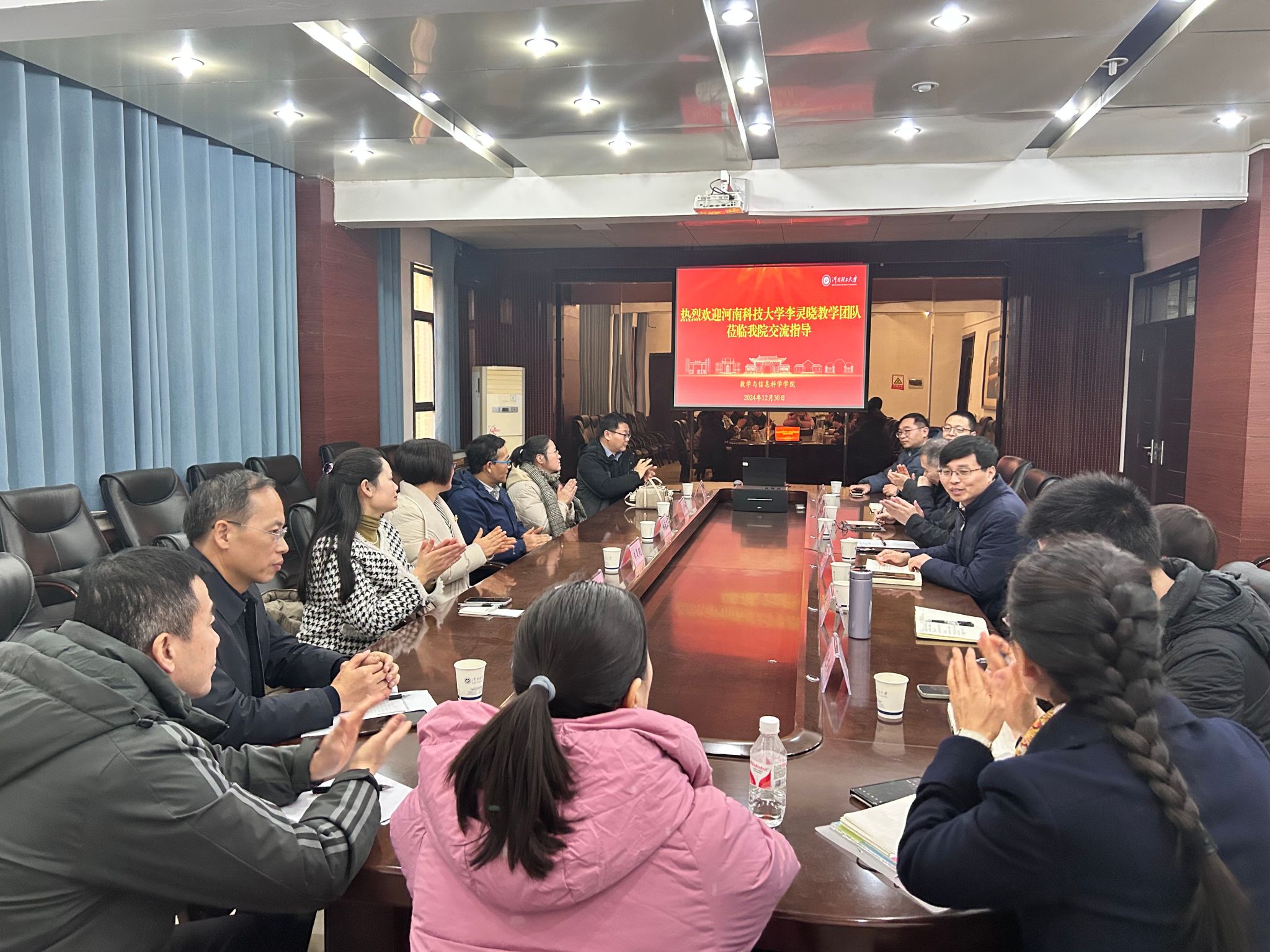 为提升教学质量,推动教育教学创新,12月30日下午,数信学院邀请河南科技大学李灵晓教学团队莅院在该院211会议室开展教学研讨交流活动。校工会副主席欧阳文峰,河南省教学名师王钦亭、郑德顺,数信学院院长毋海根、党委副书记王明中、副院长牛海峰,以及数信学院教师代表参加了交流活动。此次活动旨在分享教学经验、探讨教学创新,为提高青年教师的教学水平、教学竞赛参赛水平提供交流平台。
