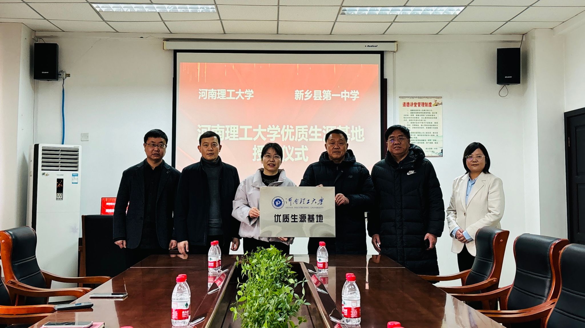 为深入贯彻《河南理工大学2025年本科招生宣传工作方案》的精神,扎实有效地推进本科生招生宣传工作,进一步提升我校的社会知名度和影响力,吸引更多高质量生源,1月2日,化工学院副院长仪桂云带队前往新乡县第一中学,共同建立“优质生源基地”并举行授牌仪式。
