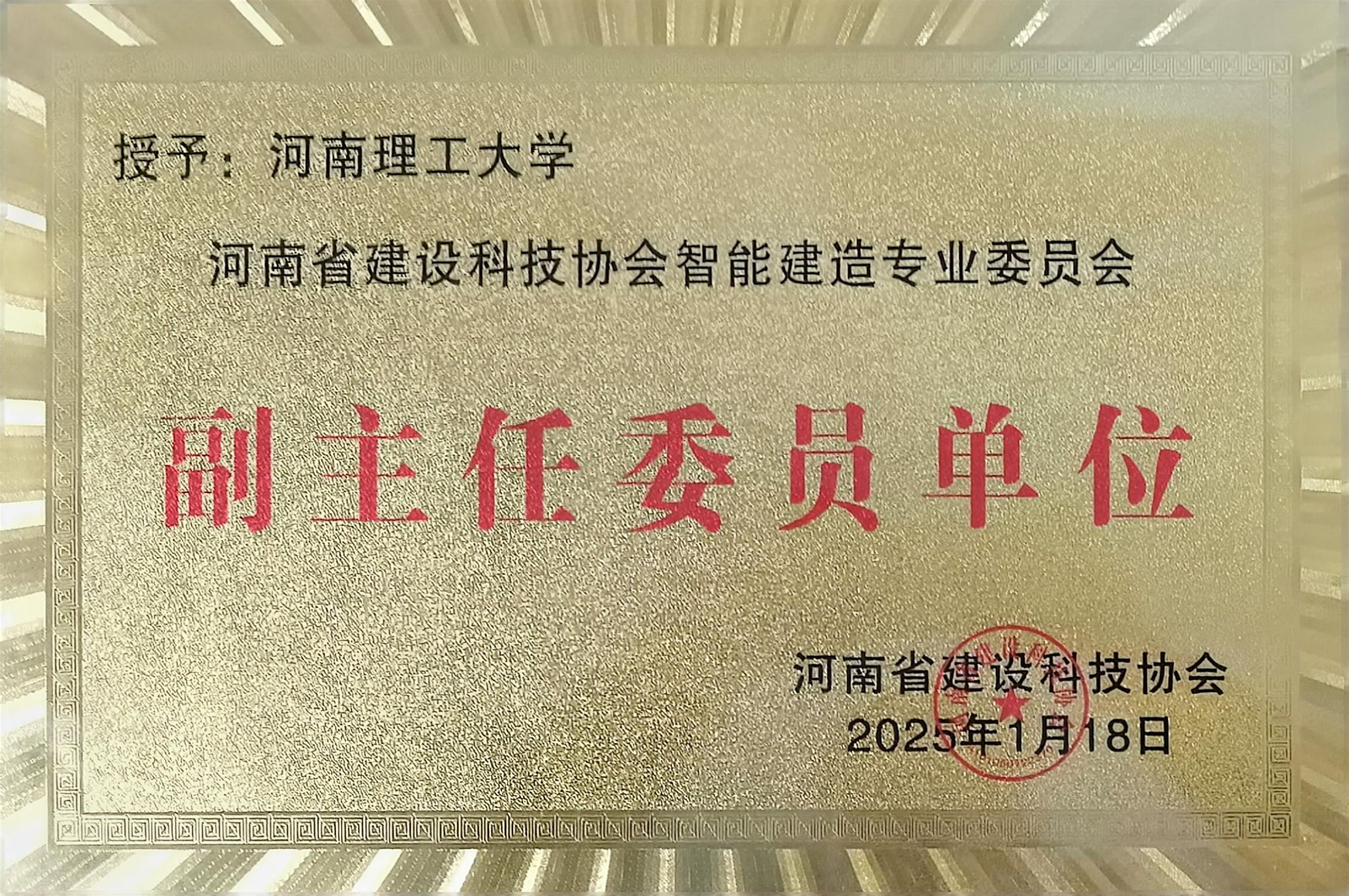 河南理工大学被授予河南省智能建造专业委员会副主任委员单位