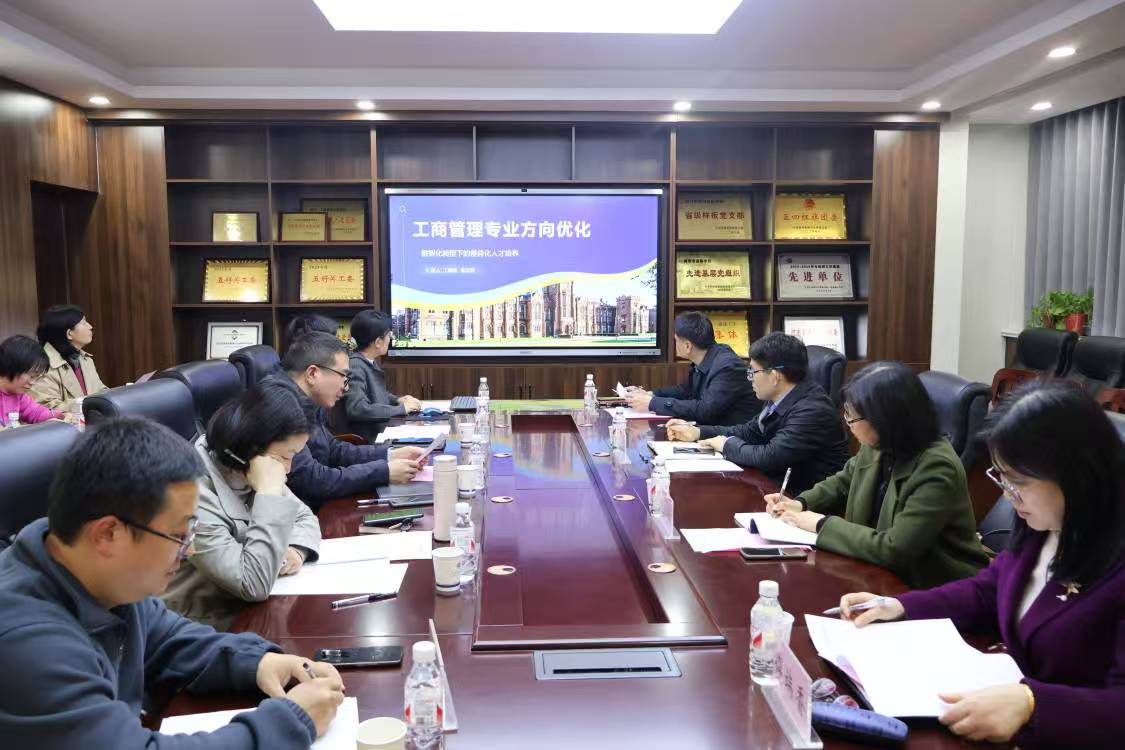 为深入推进教育教学改革,全面优化人才培养体系,提升专业建设质量,3月11日下午,工商管理学院在经管楼2201会议室召开工商管理专业分方向培养论证会。教务处副处长南华、校督导组专家赵昉、学院领导班子全体成员以及工商系骨干教师代表参加会议。会议由院长傅端香主持。