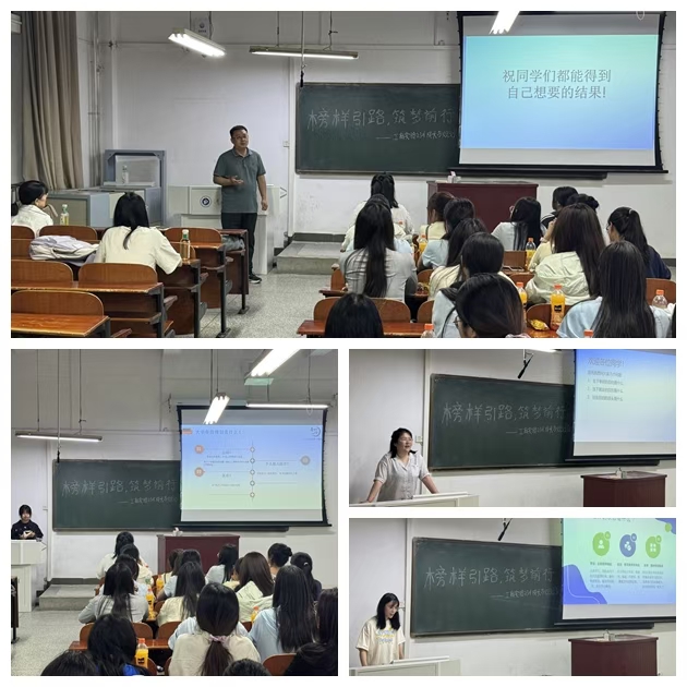 活动过程中,于欣结合自己丰富的科创竞赛经历,围绕“挑战杯”“互联网+”等重要赛事展开分享,鼓励同学们打破思维局限,积极投身科创实践,在竞赛中锤炼综合能力,努力成长为适应时代需求的复合型人才。刘佳聚焦大学学习与自我管理,围绕“如何高效学习、科学调整状态”,结合自身经历,强调了合理规划时间的重要性,建议同学们制定个性化学习计划,在专注学业的同时注重劳逸结合,通过运动、兴趣爱好等方式缓解压力,以更饱满的精神状态投入学习,提升学习效率,为同学们提供了实用的学习“方法论”。刘丹结合自身求职与实习经历,着重强调了大学期间实习机会的珍贵性,鼓励同学们主动出击、敢于尝试,在实习中积累行业经验、拓宽视野、明确职业方向,把失败当作成长的阶梯,以积极乐观的态度迎接就业挑战。