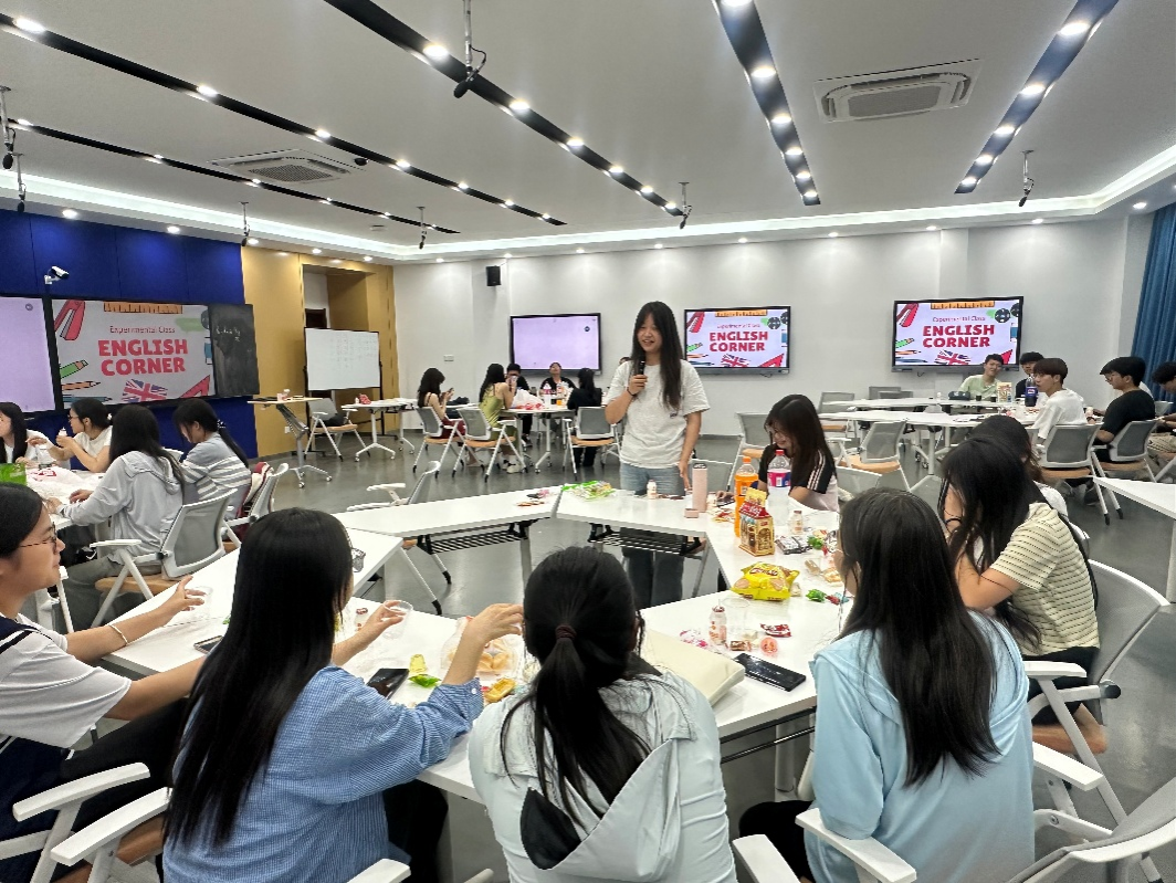 系列活动一:5月13日,学生围绕“全球化商业案例解析”与“跨文化沟通模拟”两大主题展开实践。通过情景对话、主题辩论、小组研讨等形式,学生深入探讨跨国企业运营案例,模拟国际商务礼仪与谈判技巧,有效打破“哑巴英语”困境。陈梦阳表示:“这里不仅是语言训练场,更是国际化视野的孵化器。学院致力于通过第二课堂与专业教育的深度融合,让学生真正具备与国际接轨的竞争力。”英语第二课堂营造出轻松包容的氛围,使学生们逐渐敢于开口表达自己的想法。经过即兴发言训练,学生们的逻辑思维能力和临场应变能力均得到了显著提升。