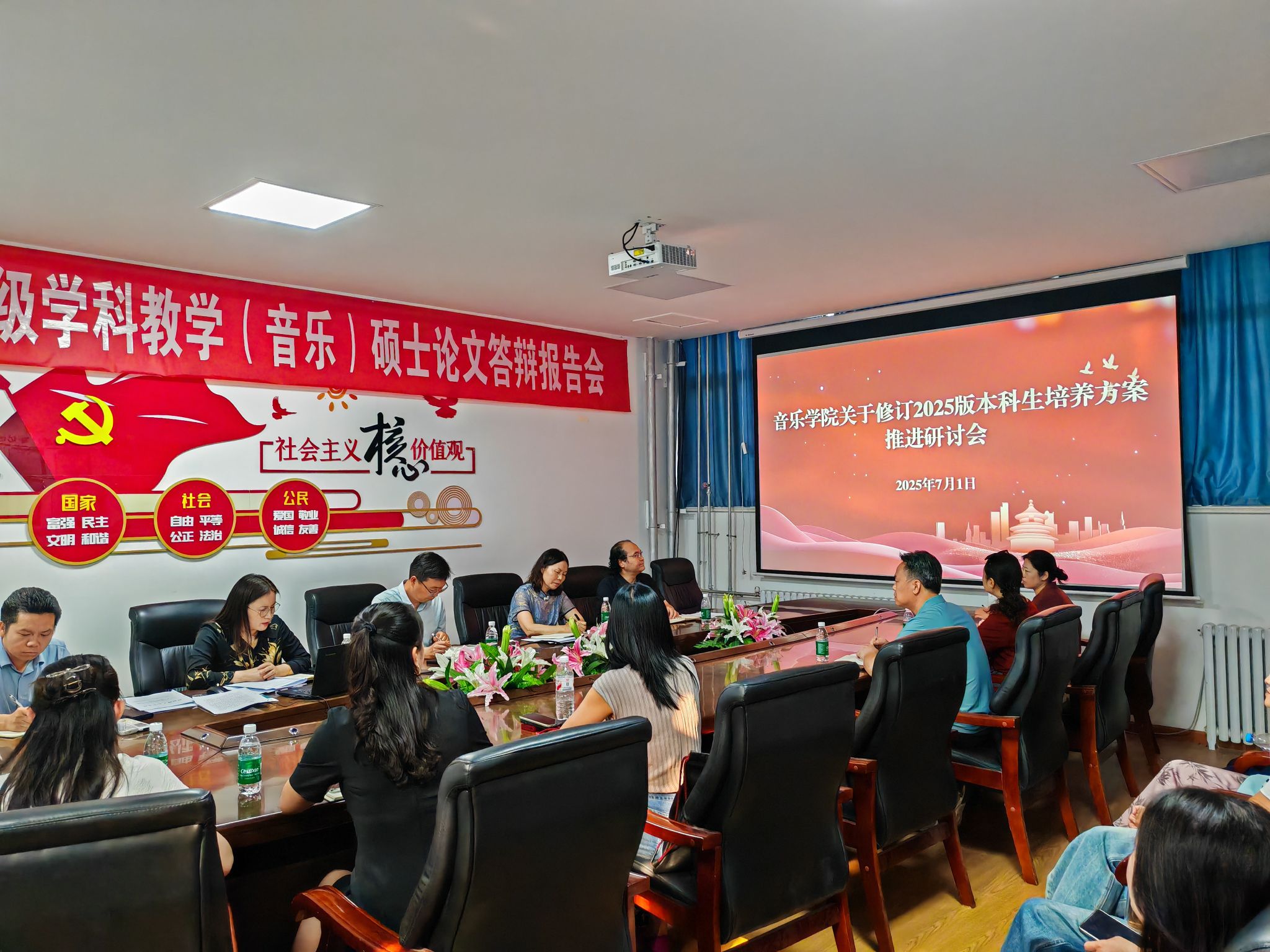 7月1日下午,音乐学院 2025 版本科生培养方案修订工作推进会在音乐楼101会议室召开。校督导组专家梁丽娟教授、学院领导班子全体成员以及学院骨干教师代表参加会议。会议由教学副院长王庆花主持。