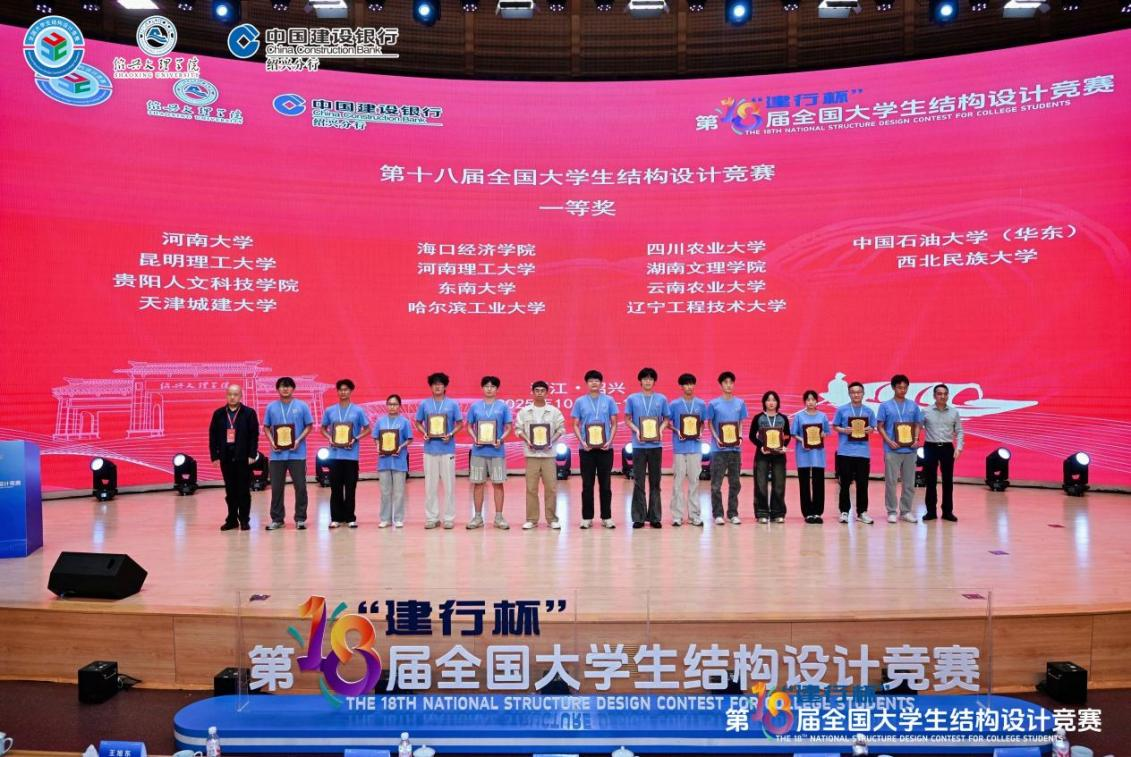 9月15日至19日,在第十八届全国大学生结构设计竞赛中,我校代表队作为河南省获得参赛资格的队伍,在由清华大学、浙江大学、同济大学、哈尔滨工业大学等在内的全国119 所高校 120 支参赛队伍中脱颖而出,获得全国一等奖。此次获奖也是河南理工大学在该项赛事取得的最好成绩,彰显了我校在土木工程、结构设计等学科领域的教学质量与人才培养水平。同时,我校还荣获优秀组织奖,该奖项是对学校在赛事筹备、团队组织、资源保障等方面高效统筹能力的高度认可,彰显了学校在专业建设与赛事组织中的综合实力。